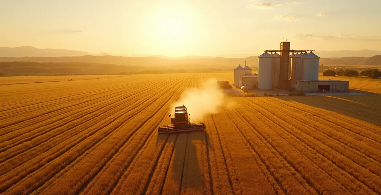 A menudo, el enfoque se centra en evitar las plagas o controlar la humedad, consejos válidos pero incompletos. Se habla de software y de seguir los precios de la lonja como si fueran soluciones mágicas. Pero si la clave no estuviera en estas acciones aisladas, sino en un cambio de mentalidad radical. ¿Y si dejaras de ver tu cosecha como un montón de grano y empezaras a tratarla como lo que realmente es: un activo financiero? Cada tonelada en tu silo es capital esperando el momento óptimo para ser liquidado con la máxima rentabilidad.